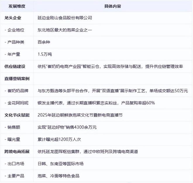 延边泡菜和冷面是吉林省特色农产品中的明星产品,也是直播电商助力地方特色产业发展的重要案例。供应链整合方面,延边金刚山食品股份有限公司作为东北最大的泡菜企业之一,产品种类百余种,年产量1.5万吨。公司通过崔奶奶电商产业园的智能云仓,实现高效存储与配送,提升供应链管理效率。直播营销方面,崔奶奶品牌与东方甄选等头部平台合作,通过双语直播展示制作工艺,单场成交额达50万元;金花阿妈妮等银发主播通过长期直播积累粉丝,复购率达60%以上。文化节庆赋能方面,2025年延边朝鲜族泡菜文化节暨新电商直播节通过线上线下联动,实现延边好物销售4300余万元,累计曝光超1200万人次。跨境电商拓展方面,延边州依托延龙图珲枢纽集群,通过中欧班列与跨境电商将泡菜产品销往日韩、东南亚等国际市场。
