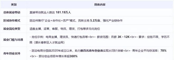 直播电商产业为吉林省提供了大量就业机会,促进了人才回流与创业创新。就业规模方面,吉林省直播电商产业直接带动就业181.19万人;延边州通过企业+合作社+农户模式流转5.2万亩土地,强化产业链协作。就业结构方面,直播电商产业链涵盖主播、运营、客服、物流等多个岗位,为不同学历、不同年龄的人群提供了就业机会。例如,长春新区人才就业网显示,电商主播、理货员、快递打包员等岗位月薪在3K~12K之间,经验不限,学历不限。青年创业方面,延边电商分园自2020年成立以来,已助力数百名青年创业者完成从零到一的跨越,青年企业平均存活率达78%,部分项目年增长率超过300%。人才培训方面,吉林省开展学电商促就业专题培训,覆盖42所高校、1.6万人次;实施一村一主播计划,培育乡村主播,推动农产品上行。